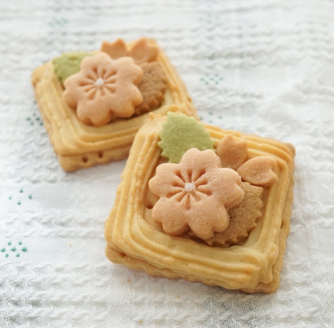 額縁に見立てたサブレに、お野菜やお抹茶で色を表現したお花のクッキーを飾りました。