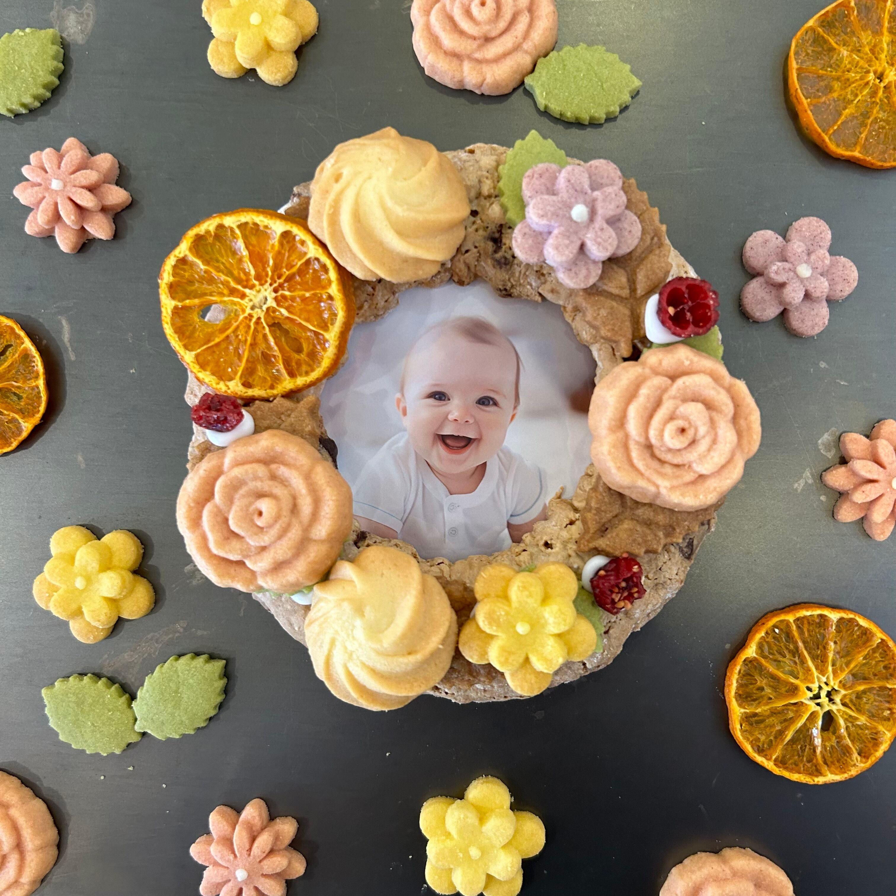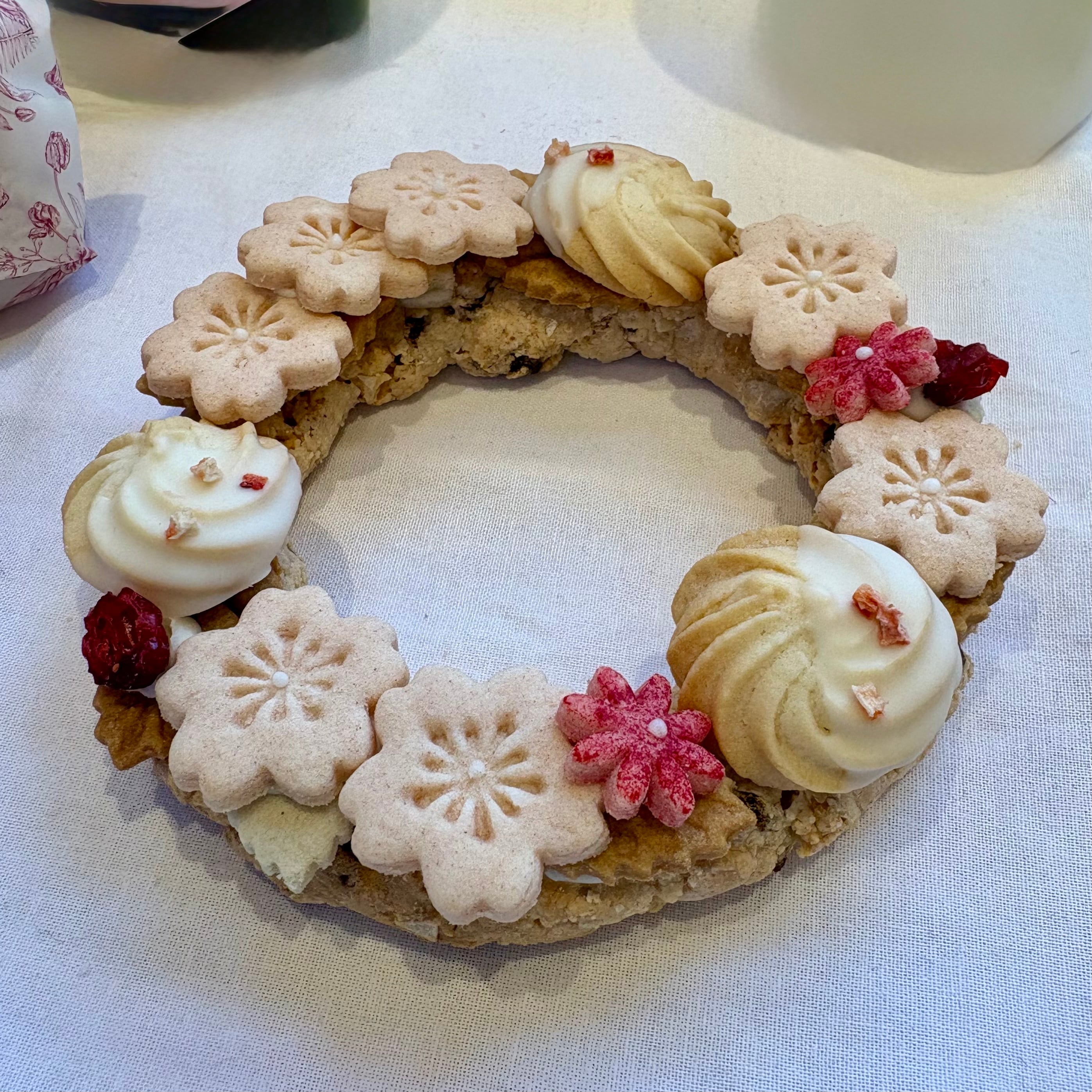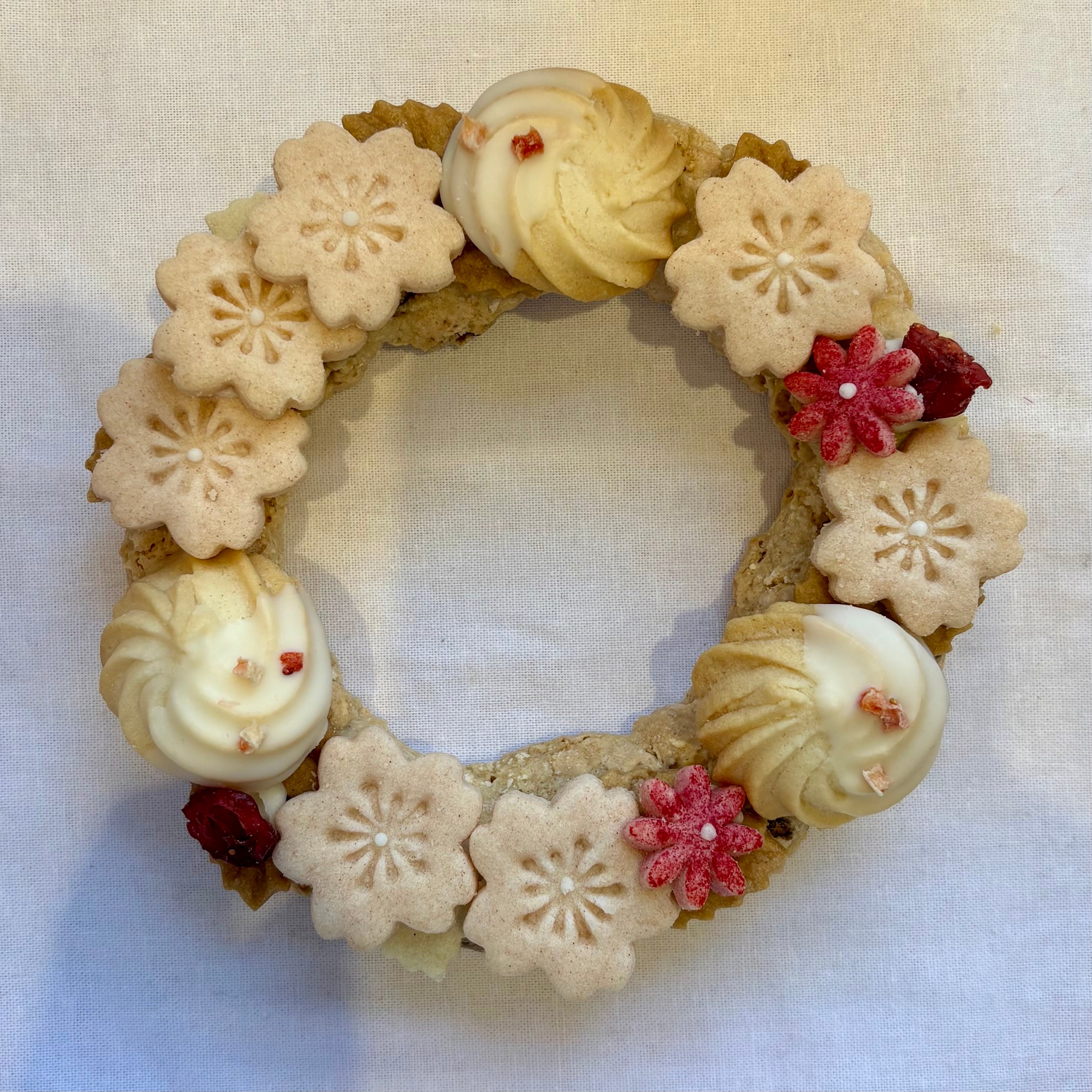 クッキーリースはイタリアの伝統菓子「ビスコッティ」をベースにクッキーの花や国産無添加のドライフルーツをトッピングしているのでまるごとお召し上がれます。